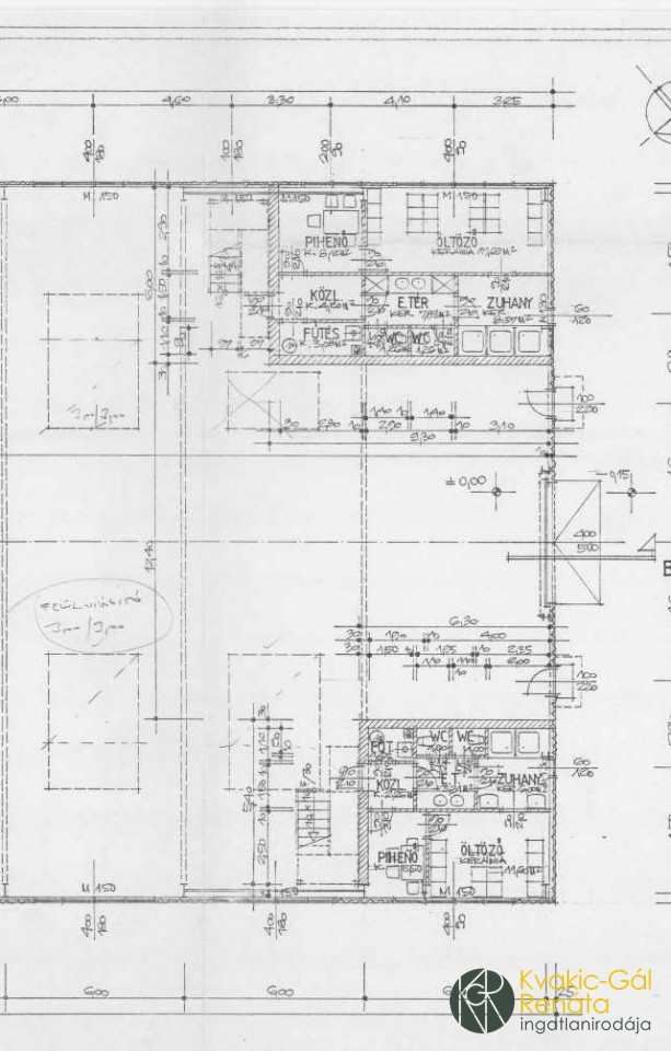 Melybe helyet kaptak, irodák, öltözők, mosdók, zuhanyzók, konyha, étkező