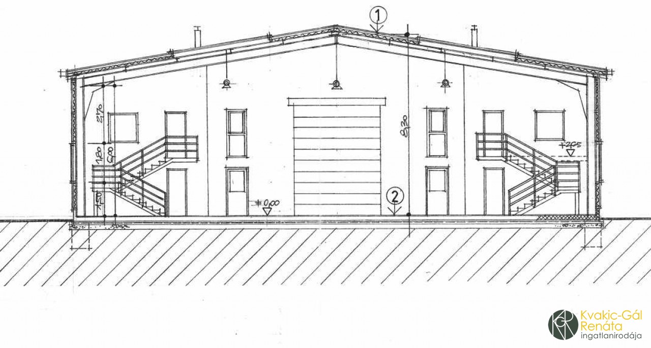 Utcafrontról és hátsó oldalon is kamion beállóval.