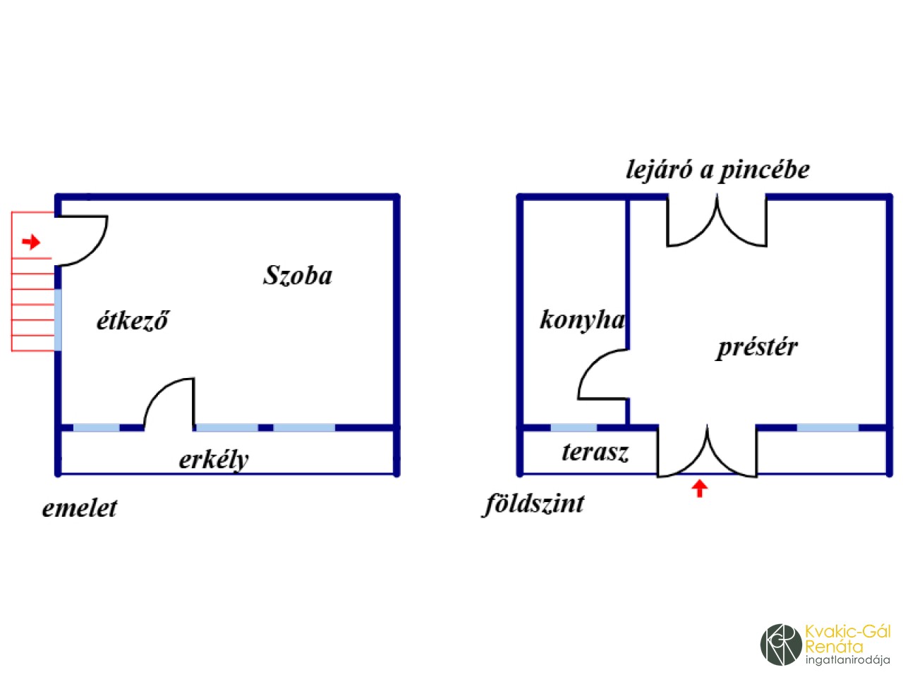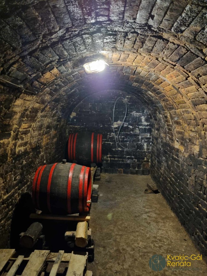 Az alsó szint kialakítása: konyha, préselő helyiség és lejáró a pincébe.